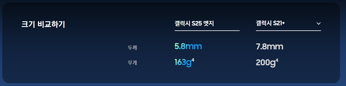 갤럭시 S25 엣지는 5.8mm 두께, 163g 무게의 초슬림 바디로 완성됐습니다.