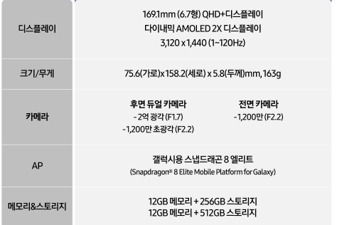 | 칩셋 | Snapdragon 8 Elite |