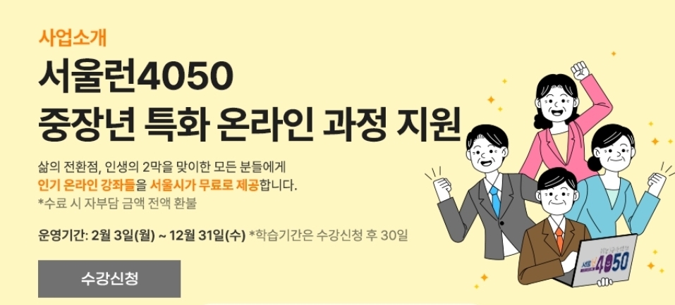 서울시는 중장년 시민들이 ‘인생 2막’을 준비할 수 있도록 서울런4050 평생학습포털을 운영하고 있습니다.