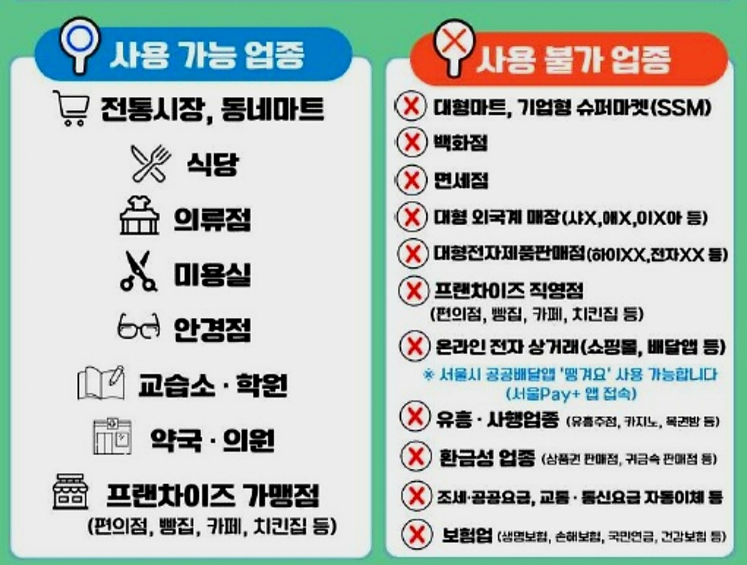 서울페이 사용 가능업종과 사용 불가 업종