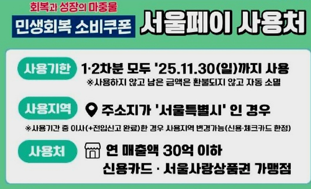 소비자도 이득, 소상공인도 웃는 민생회복 소비쿠폰. 지금 신청해서 서울시민만의 혜택을 톡톡히 누려보세요.😊