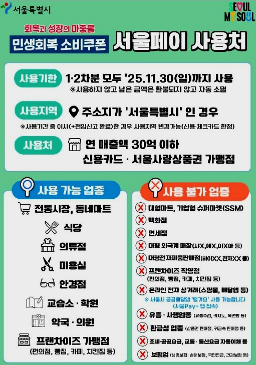 서울페이 사용 가능업종과 사용 불가 업종
