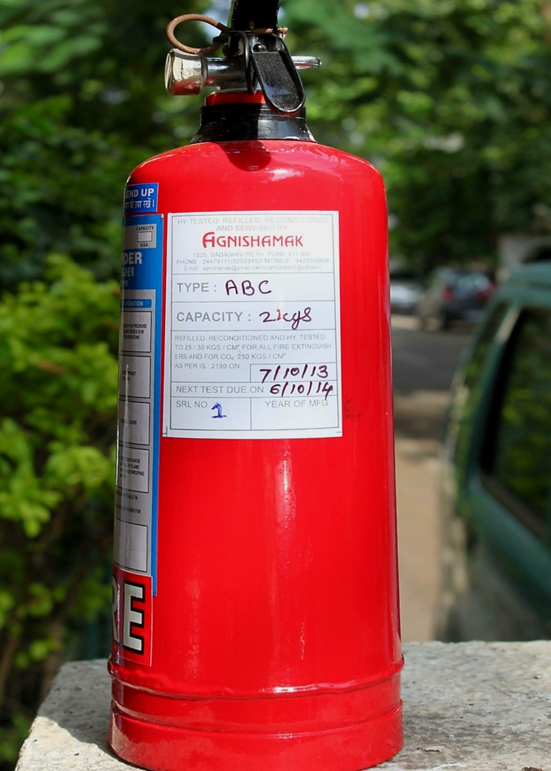 소화기의 몸체에 적힌 제조년월일을 확인하세요. 유효기간이 지난 경우 내용물이 굳거나 압력이 낮아져 실제 화재 시 사용할 수 없습니다. 특히 압력게이지가 있는 소화기는 눈금이 '녹색'인지 확인하세요.