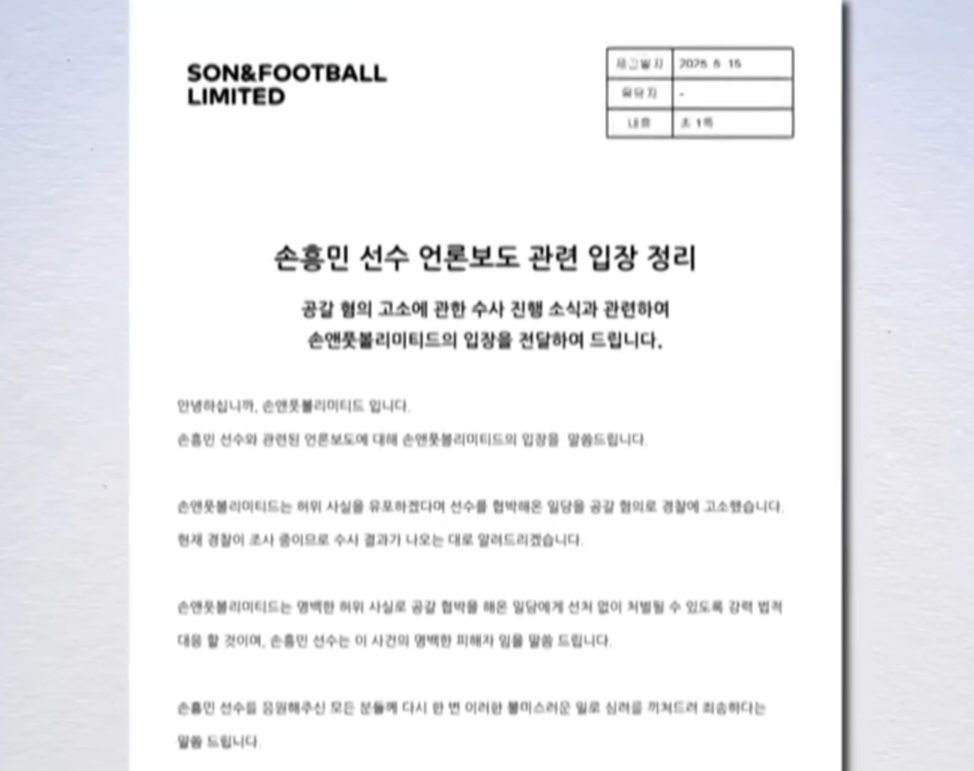 손흥민 소속사 역시 “허위 주장에 단호히 대응하겠다”는 공식 입장을 밝혔습니다.