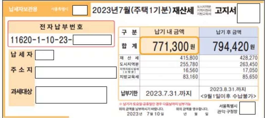Tip: 주택은 7월과 9월로 나눠서 고지가 될 수 있으니 일정 확인은 필수!