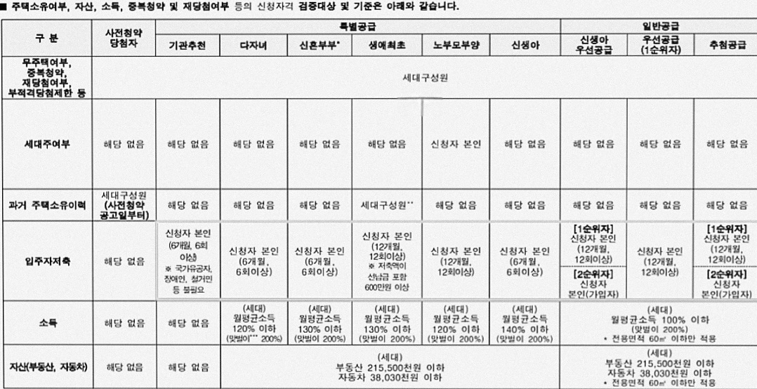 - 청약통장 가입 6개월 이상 + 납입 6회 이상