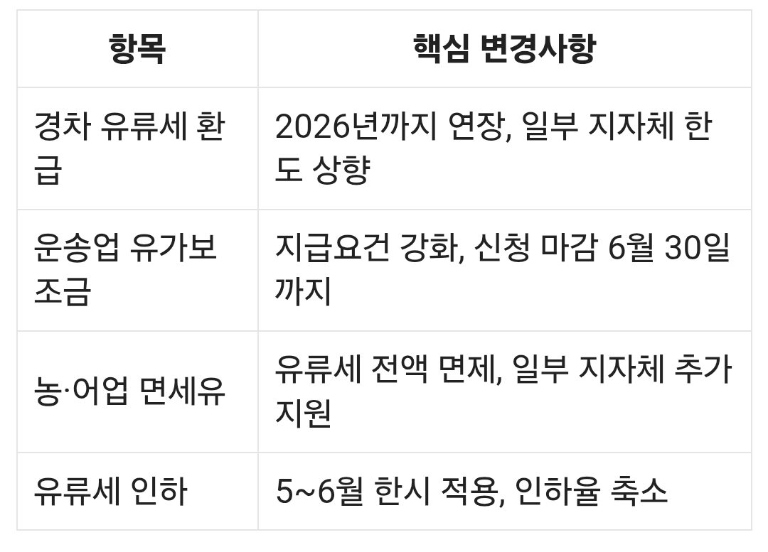 요약: 2025 유류비 지원 핵심 정리