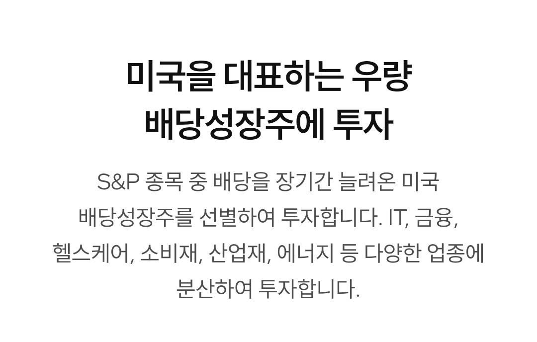 이 ETF는 S&P500 내 우량 배당성장주에 분산 투자하며, 각 종목의 비중을 8% 이하로 조절해서 리스크를 관리합니다. 2024년 6월부터는 DIVO 구성 비중 75%, S&P500 ETF 비중 25%로 포트폴리오를 재구성하여 더 유연한 전략 운용이 가능해졌습니다.